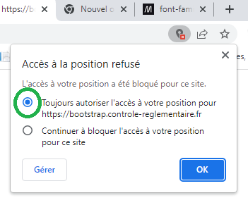 Si vous travaillez depuis un ordinateur, localisez l'icone GPS dans la fenêtre du navigateur.